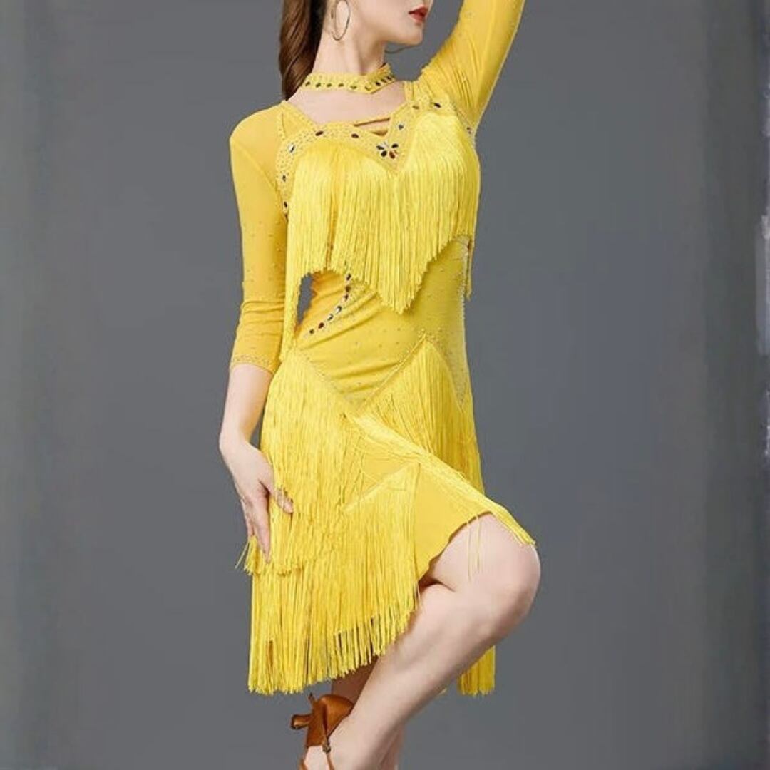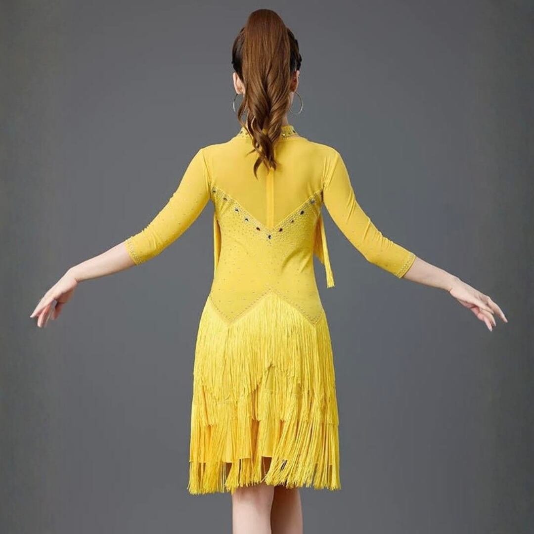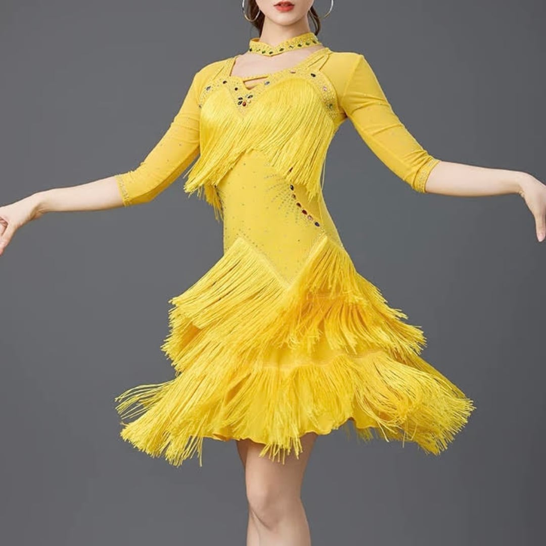 【商品管理番号】 L00023 【商品説明】 ラインストーンとタッセルが華やかに装飾された五分袖ワンピースです。キラキラとした輝きが特徴で、膝丈のデザインがスタイリッシュな印象を与えます。 PURPLE/BLACK/YELLOW/RED 【サイズ】 【M】バスト:78-90cm/ウエスト:68-78cm/着丈:85cm 【L】バスト:82-94cm/ウエスト:72-82cm/着丈:86cm 【XL】バスト:86-98cm/ウエスト:76-86cm/着丈:87cm 【2XL】バスト:90-102cm/ウエスト:80-90cm/着丈:88cm 【3XL】バスト:94-106cm/ウエスト:84-94cm/着丈:88cm ※サイズは測り方により1-3㎝の誤差が生じる場合がございます。 【素材】 95%ポリエステル/5%ポリウレタン ▼ご購入前にこちらを必ずお読みください https://admin.thebase.com/shop_admin/design/themes?r=about