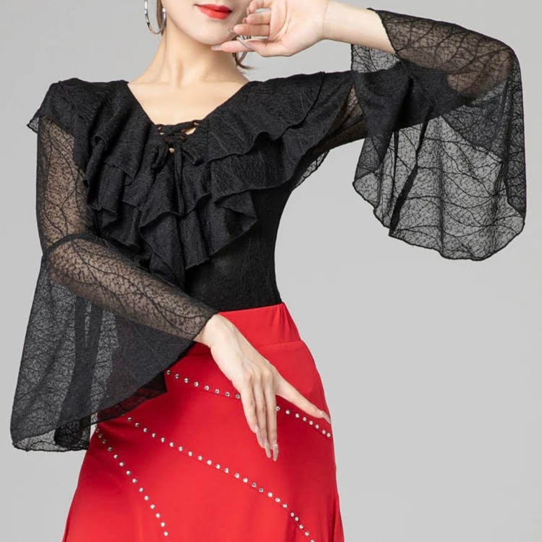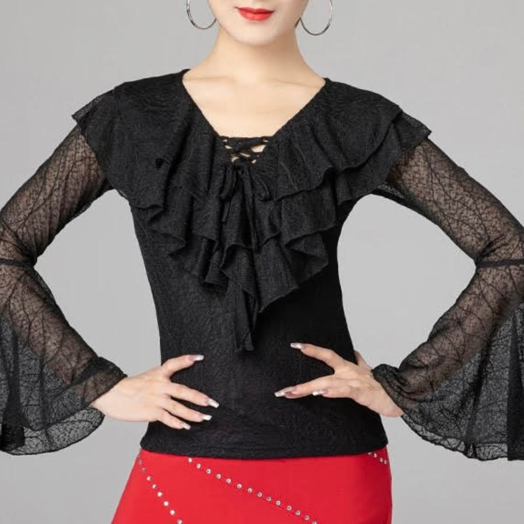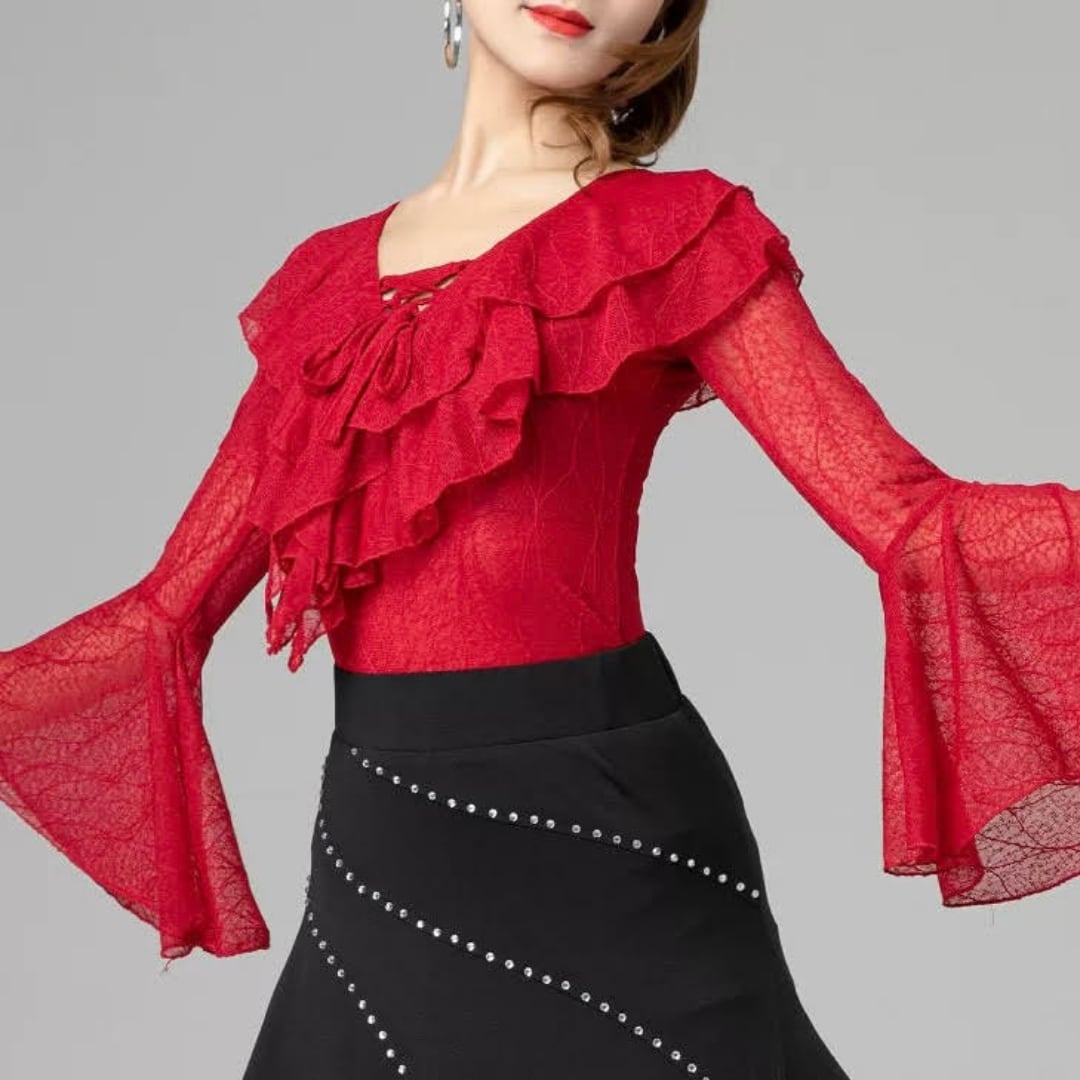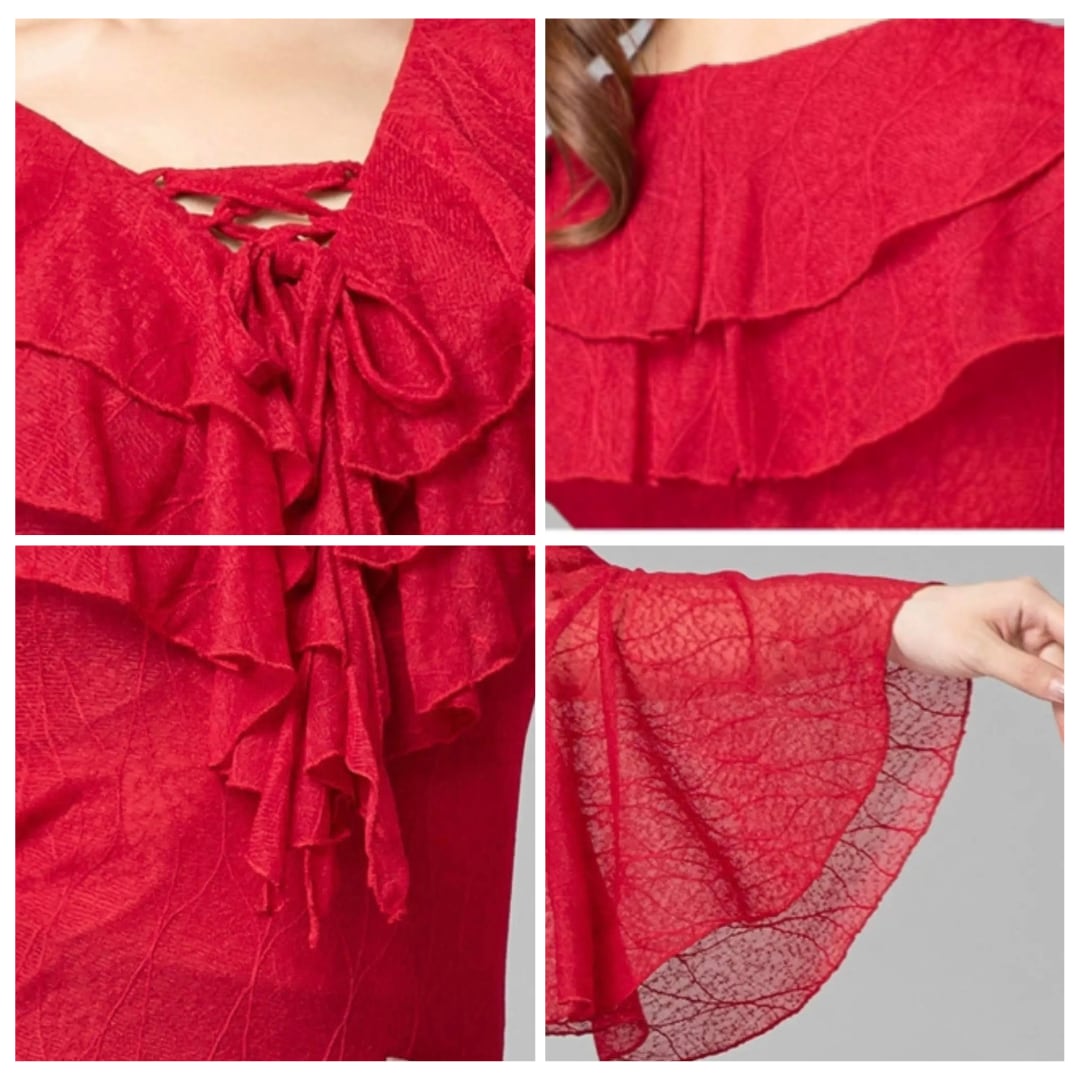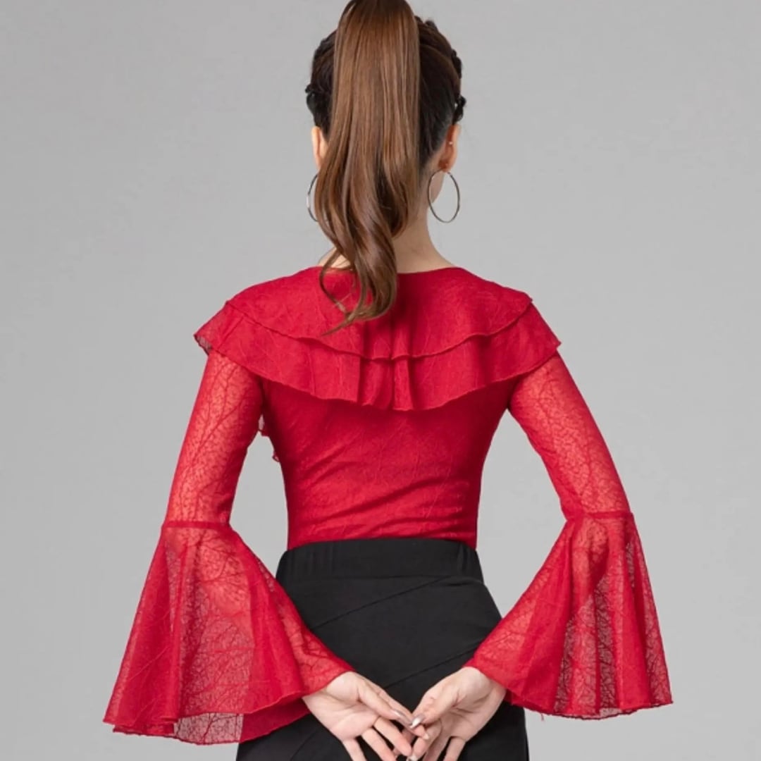 【商品管理番号】 L00069 【商品説明】 透け感のある生地とフリルデザインが特徴的なトップスです。Vネックが首元を美しく引き立て、フレアスリーブが優雅な印象を与えます。 RED/BLACK/BLUE 【サイズ】 【M】バスト:78-88cm/ウエスト:64-72cm/着丈:53cm 【L】バスト:82-92cm/ウエスト:70-78cm/着丈:54cm 【XL】バスト:86-96cm/ウエスト:76-84cm/着丈:55cm 【2XL】バスト:90-100cm/ウエスト:82-90cm/着丈:56cm ※サイズは測り方により1-3㎝の誤差が生じる場合がございます。 【素材】 95%ナイロン/5%ポリウレタン ▼ご購入前にこちらを必ずお読みください https://admin.thebase.com/shop_admin/design/themes?r=about