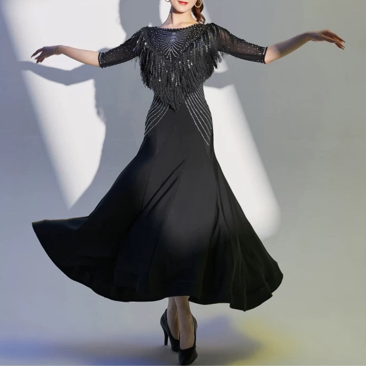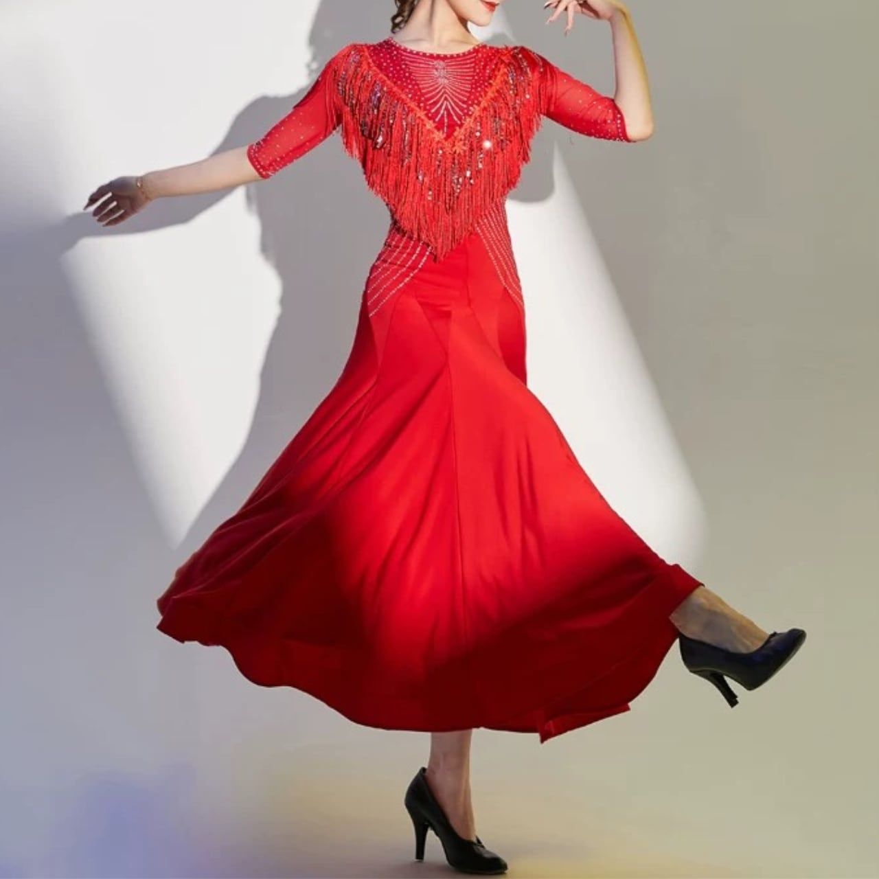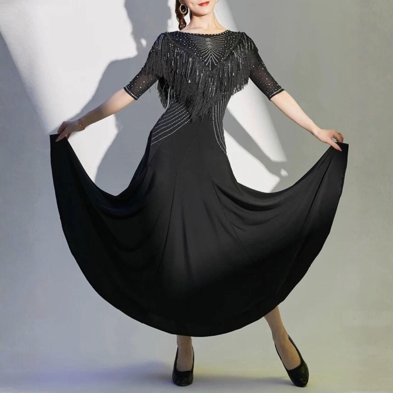 【商品管理番号】 L00108 【商品説明】 デコルテから流れるように施したビジューとフリンジが印象的なロングドレス。上半身の装飾と裾へ広がるフレアシルエットが、動きに合わせて美しいラインを描きます。ステージシーンで存在感を放つ一枚です。 BLACK/RED 【サイズ】 【M】バスト:78-88cm/ウエスト:64-72cm/着丈:117cm 【L】バスト:82-92cm/ウエスト:70-78cm/着丈:118cm 【XL】バスト:86-96cm/ウエスト:76-84cm/着丈:119cm 【2L】バスト:90-100cm/ウエスト:82-90cm/着丈:120cm ※サイズは測り方により1-3㎝の誤差が生じる場合がございます。 【素材】 95%ナイロン/5%ポリウレタン ▼ご購入前にこちらを必ずお読みください https://admin.thebase.com/shop_admin/design/themes?r=about