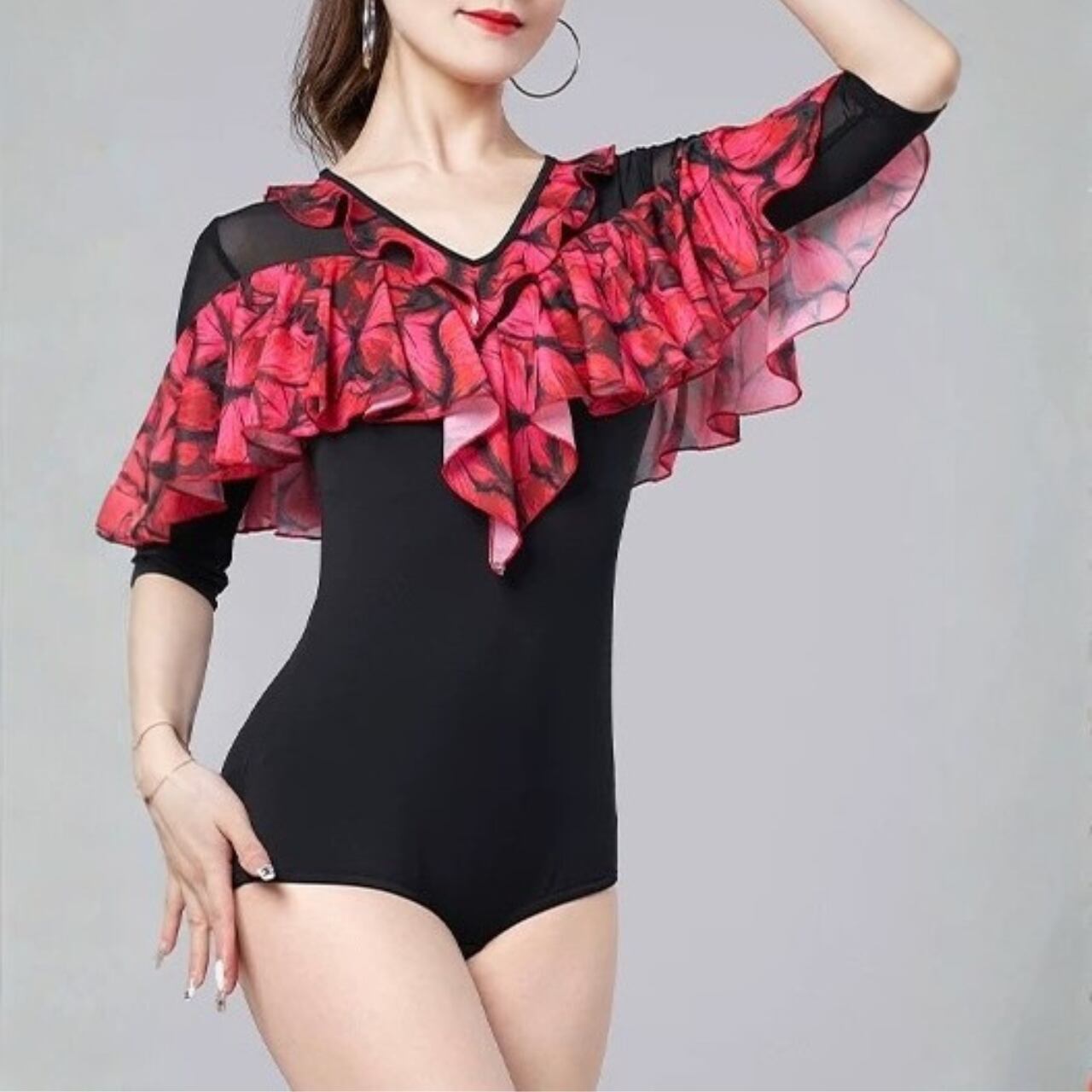 【商品管理番号】 L00115 【商品説明】 胸元に動きをつけるフリルデザインを取り入れたレオタード。切替ラインがボディを美しく引き締め、シルエットにメリハリを演出。腕まわりのデザインが動作を優雅に見せ、舞台でも存在感を放つ一枚です。 RED/BLUE 【サイズ】 【M】バスト:78-90cm/ウエスト:68-78cm/着丈:85cm 【L】バスト:82-94cm/ウエスト:72-82cm/着丈:86cm 【XL】バスト:86-98cm/ウエスト:76-86cm/着丈:87cm 【2XL】バスト:90-102cm/ウエスト:80-90cm/着丈:88cm ※サイズは測り方により1-3㎝の誤差が生じる場合がございます。 【素材】 95%ナイロン/5%ポリウレタン ▼ご購入前にこちらを必ずお読みください https://admin.thebase.com/shop_admin/design/themes?r=about