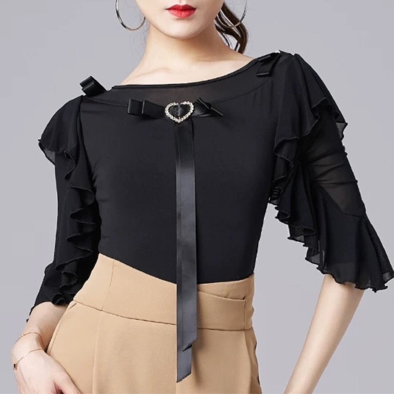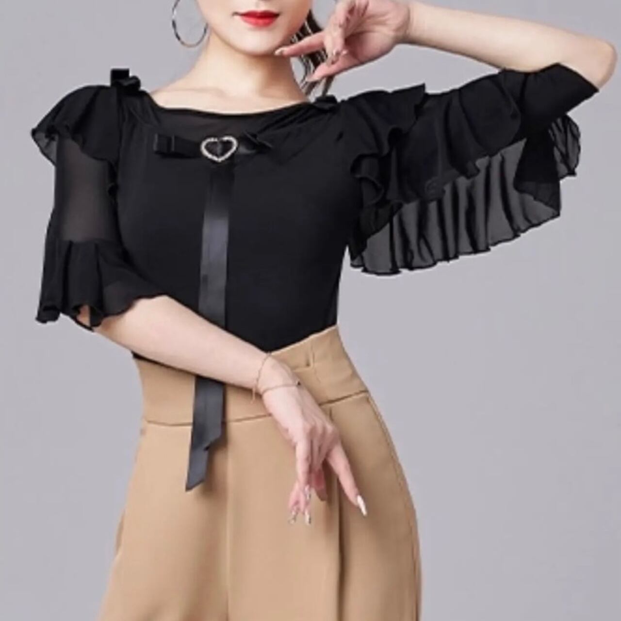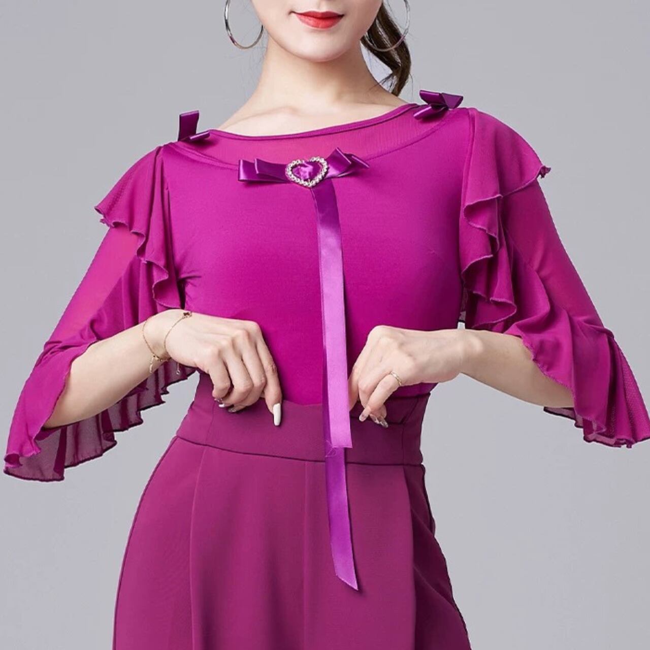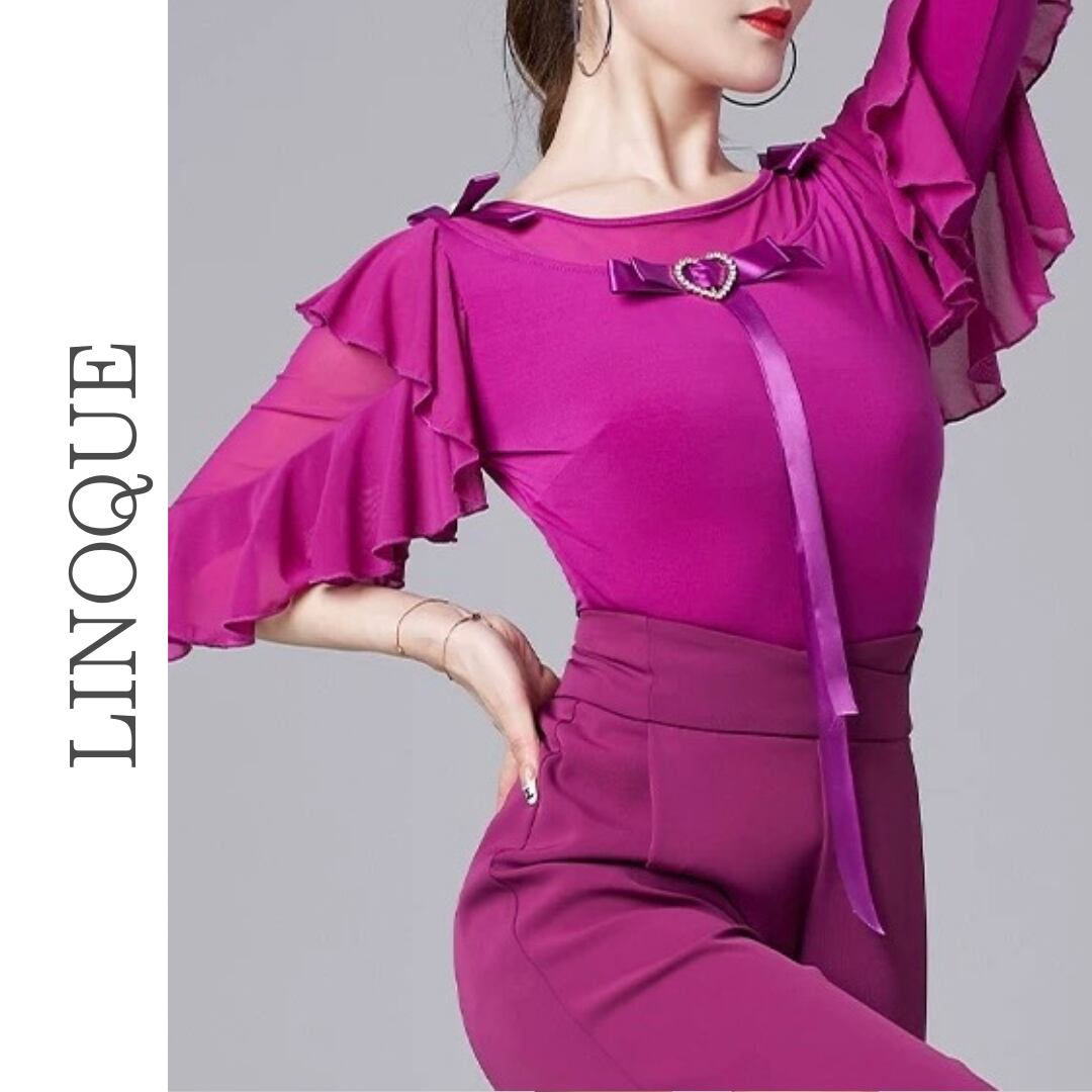 【商品管理番号】 L00117 【商品説明】 胸元のハートモチーフとリボンディテールが印象的なフリルスリーブレオタード。透け感のある袖と柔らかなフリルが上半身に立体感を与え、動きの中でも美しいシルエットを演出。身体に程よくフィットするデザインで、練習時はもちろんステージシーンにも映える一着です。 PURPLE/BLACK 【サイズ】 【M】バスト:78-90cm/ウエスト:68-78cm/着丈:85cm 【L】バスト:82-94cm/ウエスト:72-82cm/着丈:86cm 【XL】バスト:86-98cm/ウエスト:76-86cm/着丈:87cm 【2XL】バスト:90-102cm/ウエスト:80-90cm/着丈:88cm ※サイズは測り方により1-3㎝の誤差が生じる場合がございます。 【素材】 95%ポリエステル/5%ポリウレタン ▼ご購入前にこちらを必ずお読みください https://admin.thebase.com/shop_admin/design/themes?r=about