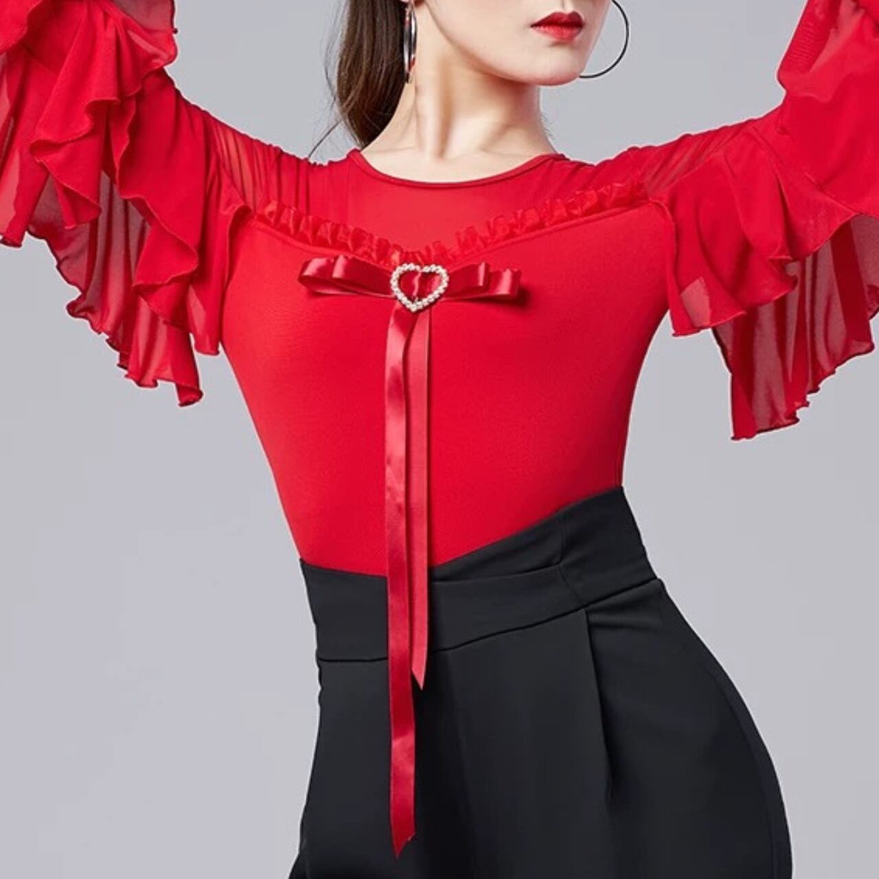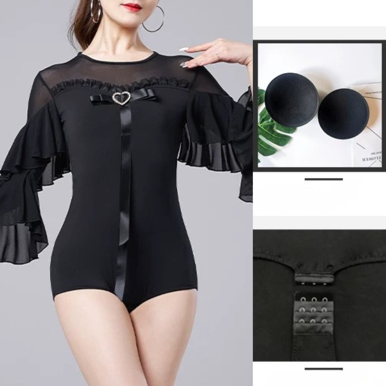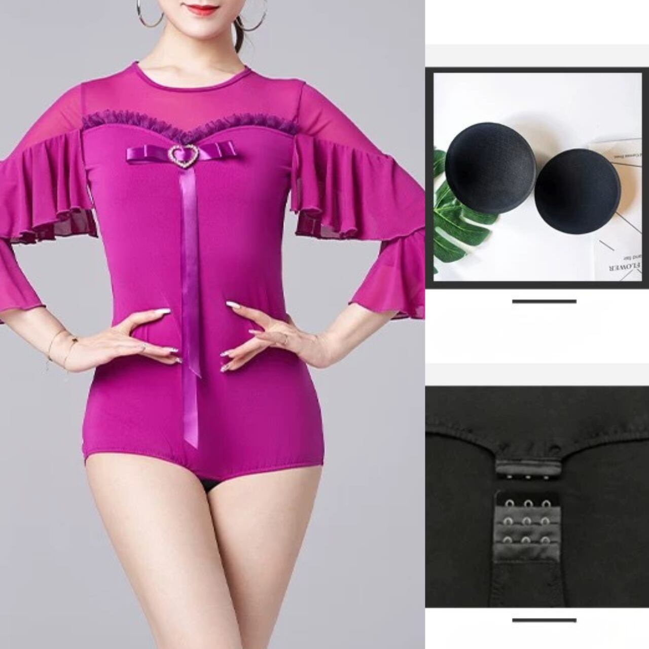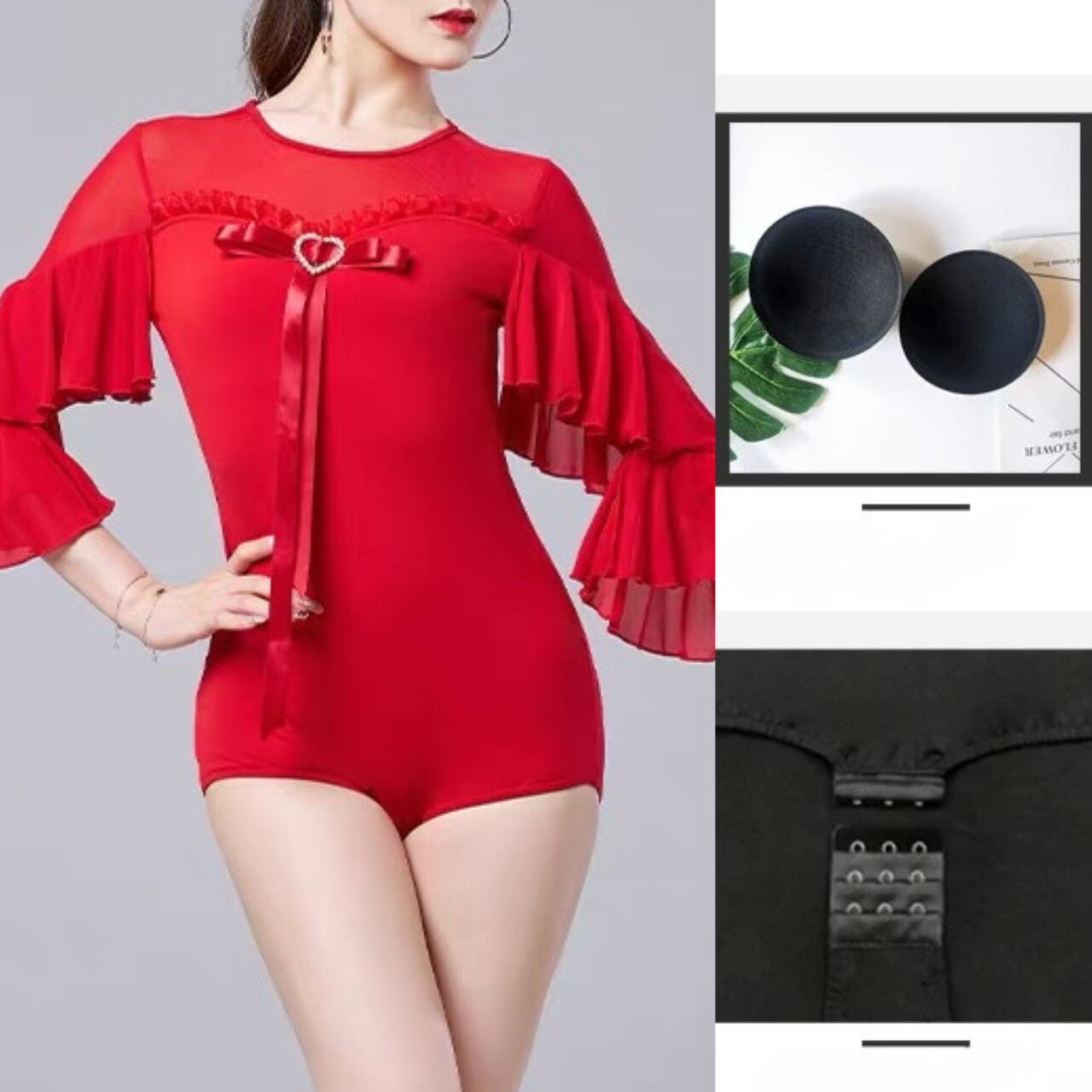 【商品管理番号】 L00118 【商品説明】 胸元にあしらわれたハートモチーフとリボンディテールが上品なアクセントになるレオタード。透け感のある切り替えとフリルスリーブが動きに合わせて印象を与えるデザインです。身体に程よくフィットし、女性らしいシルエットを引き立てます。 PURPLE/BLACK/RED 【サイズ】 【M】バスト:78-90cm/ウエスト:68-78cm/着丈:85cm 【L】バスト:82-94cm/ウエスト:72-82cm/着丈:86cm 【XL】バスト:86-98cm/ウエスト:76-86cm/着丈:87cm 【2XL】バスト:90-102cm/ウエスト:80-90cm/着丈:88cm ※サイズは測り方により1-3㎝の誤差が生じる場合がございます。 【素材】 95%ポリエステル/5%ポリウレタン ▼ご購入前にこちらを必ずお読みください https://admin.thebase.com/shop_admin/design/themes?r=about