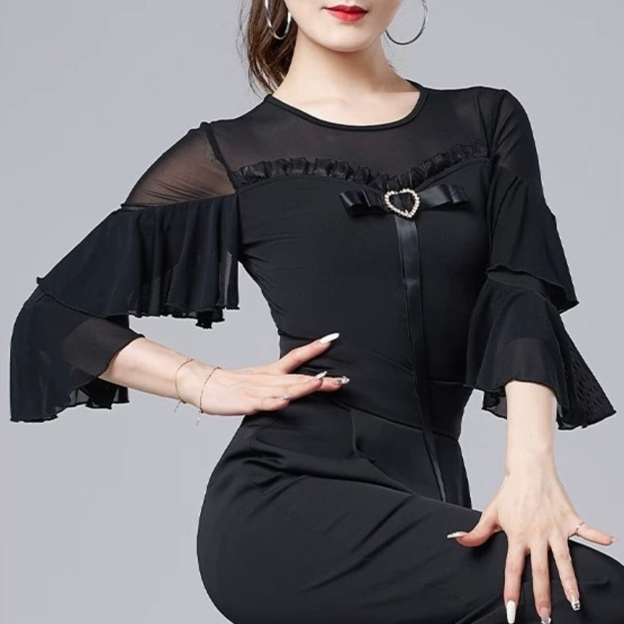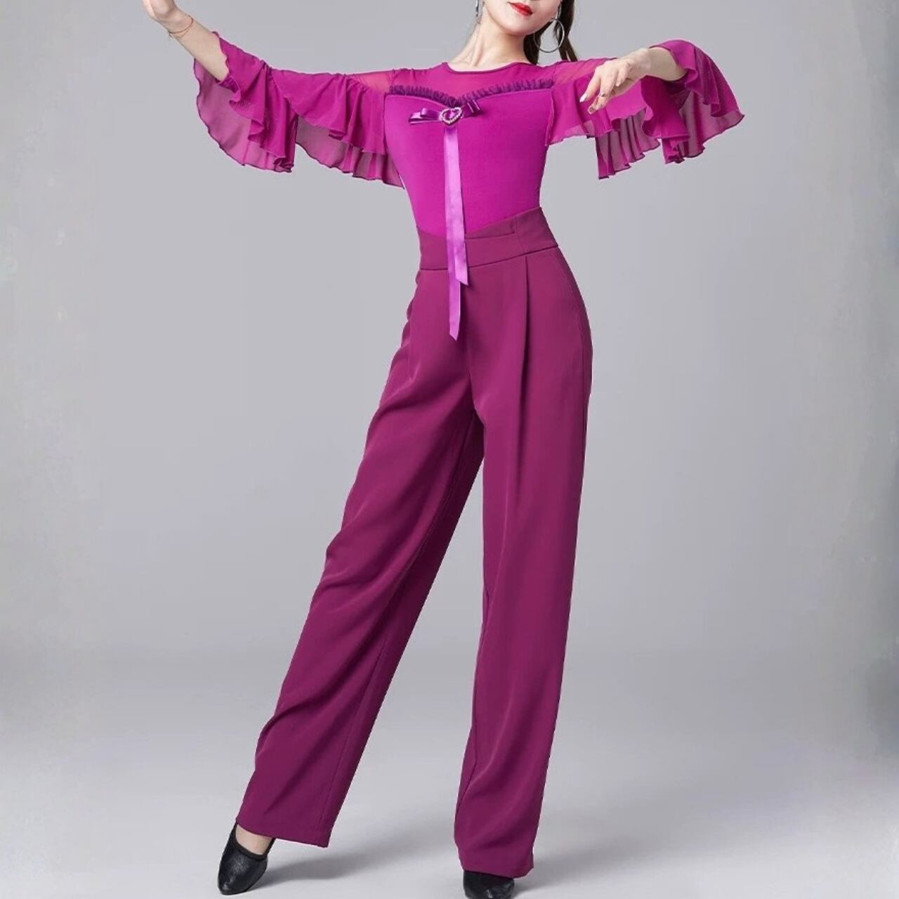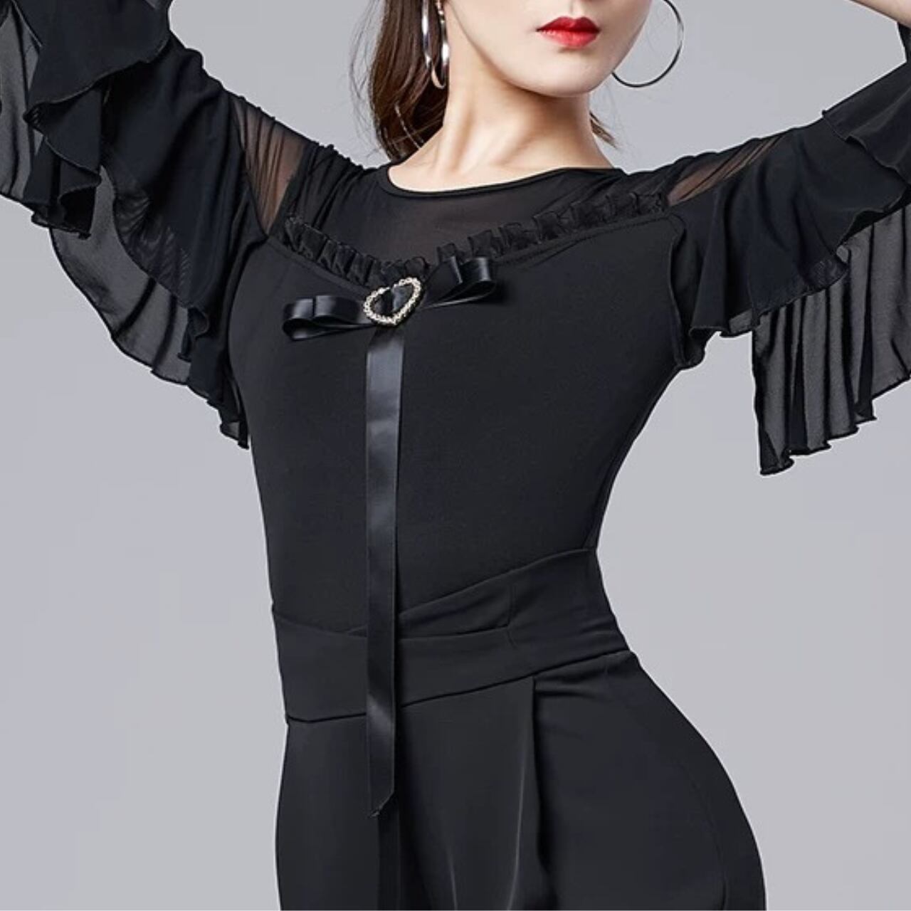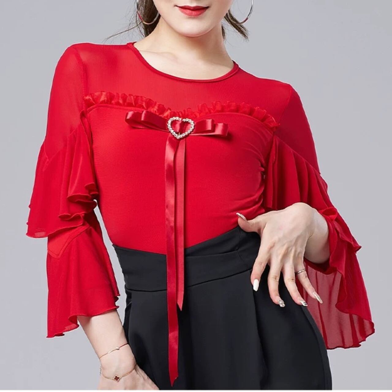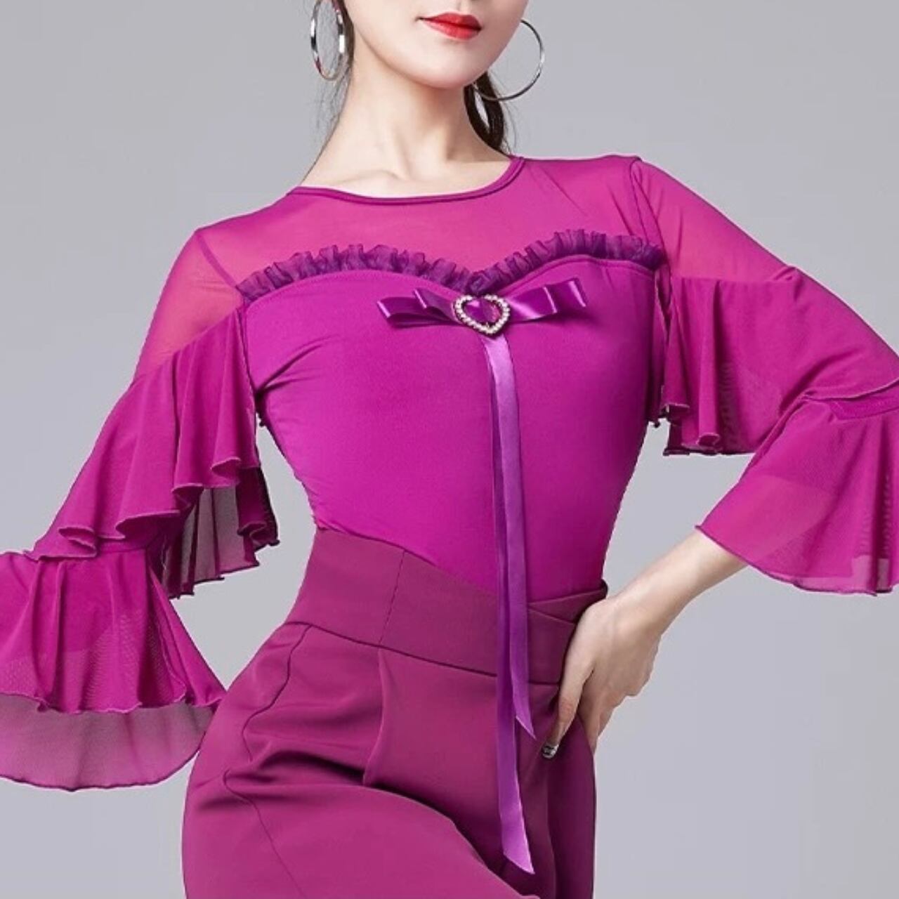 【商品管理番号】 L00118 【商品説明】 胸元にあしらわれたハートモチーフとリボンディテールが上品なアクセントになるレオタード。透け感のある切り替えとフリルスリーブが動きに合わせて印象を与えるデザインです。身体に程よくフィットし、女性らしいシルエットを引き立てます。 PURPLE/BLACK/RED 【サイズ】 【M】バスト:78-90cm/ウエスト:68-78cm/着丈:85cm 【L】バスト:82-94cm/ウエスト:72-82cm/着丈:86cm 【XL】バスト:86-98cm/ウエスト:76-86cm/着丈:87cm 【2XL】バスト:90-102cm/ウエスト:80-90cm/着丈:88cm ※サイズは測り方により1-3㎝の誤差が生じる場合がございます。 【素材】 95%ポリエステル/5%ポリウレタン ▼ご購入前にこちらを必ずお読みください https://admin.thebase.com/shop_admin/design/themes?r=about