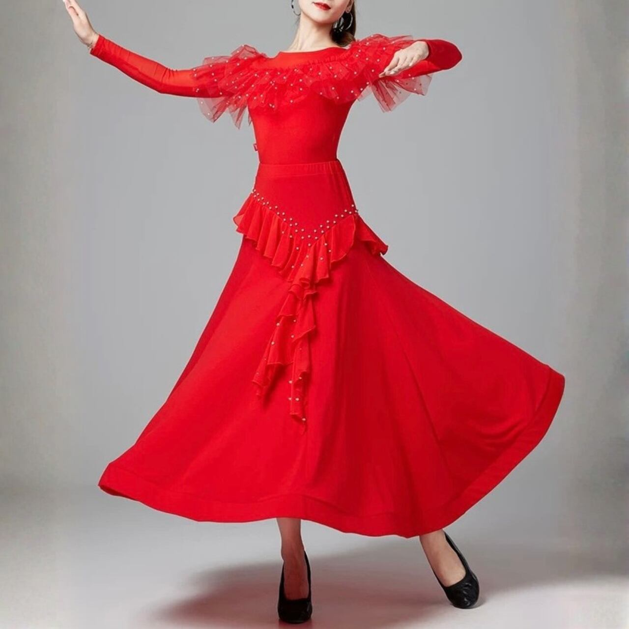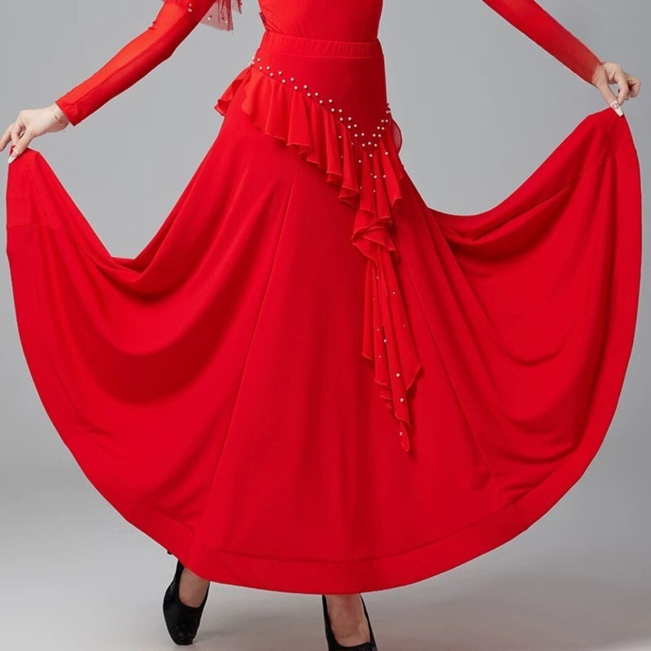 【商品管理番号】 L00119 【商品説明】 なめらかに広がるラインが印象的なロングスカート。フリルとパール調のディテールが動きに合わせて揺れ、縦のラインをきれいに見せます。ステージシーンに取り入れやすく、存在感をプラスする一枚です。 RED/PURPLE/BLACK 【サイズ】 【M】ウエスト:68-78cm/着丈:88cm 【L】ウエスト:72-82cm/着丈:88cm 【XL】ウエスト:76-86cm/着丈:90cm 【2XL】ウエスト:80-90cm/着丈:90cm ※サイズは測り方により1-3㎝の誤差が生じる場合がございます。 【素材】 95%ポリエステル/5%ポリウレタン ▼ご購入前にこちらを必ずお読みください https://admin.thebase.com/shop_admin/design/themes?r=about
