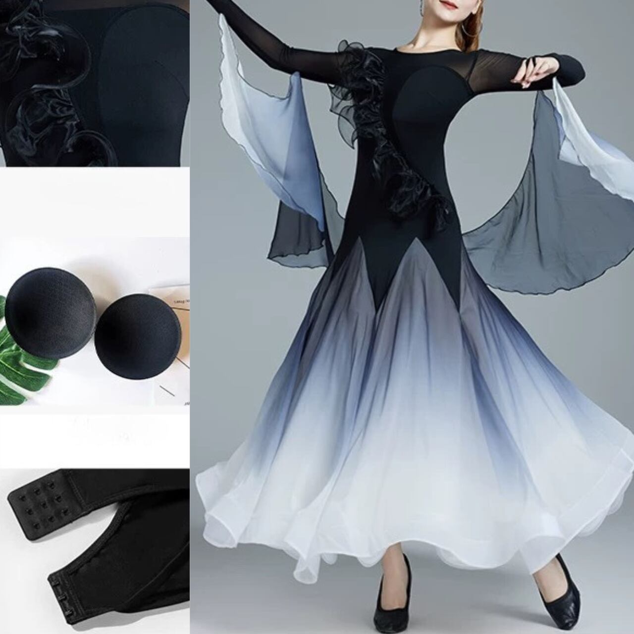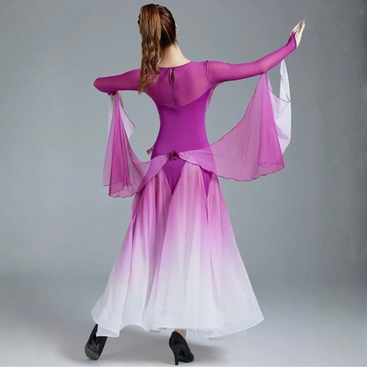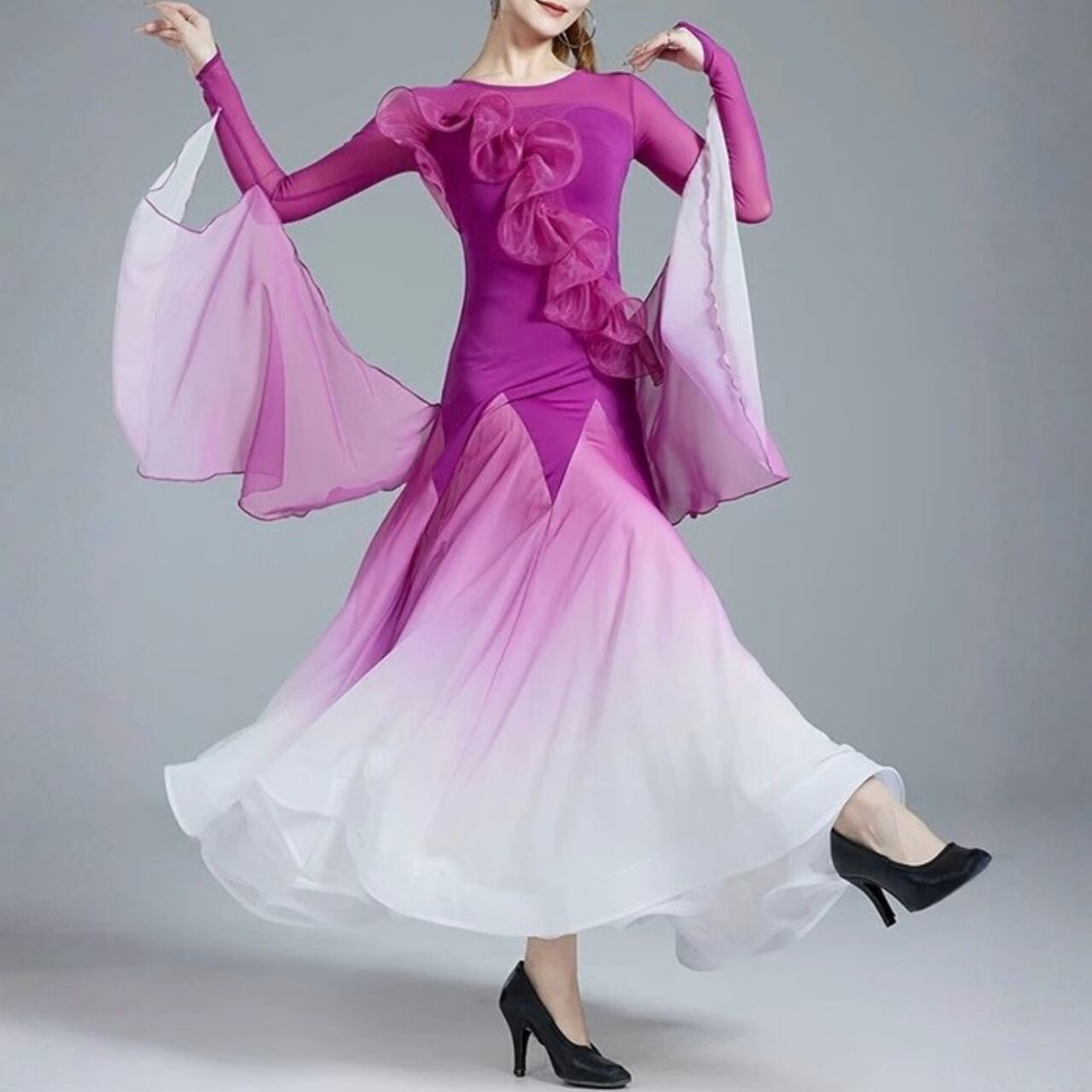 【商品管理番号】 L00122 【商品説明】 グラデーションが映えるシフォンのドレス。透け感のある袖と立体フリルが上半身を印象的に見せます。広がるスカートがラインをきれいに見せて、ステージでも写真でも映える一枚です。 RED/PURPLE/BLACK 【サイズ】 【M】バスト:78-90cm/ウエスト:68-78cm/着丈:120cm 【L】バスト:82-92cm/ウエスト:72-82cm/着丈:121cm 【XL】バスト:86-96cm/ウエスト:76-86cm/着丈:122cm 【2XL】バスト:90-102cm/ウエスト:80-90cm/着丈:123cm 【3XL】バスト:94-106cm/ウエスト:84-94cm/着丈:124cm ※サイズは測り方により1-3㎝の誤差が生じる場合がございます。 【素材】 95%ポリエステル/5%ポリウレタン ▼ご購入前にこちらを必ずお読みください https://admin.thebase.com/shop_admin/design/themes?r=about
