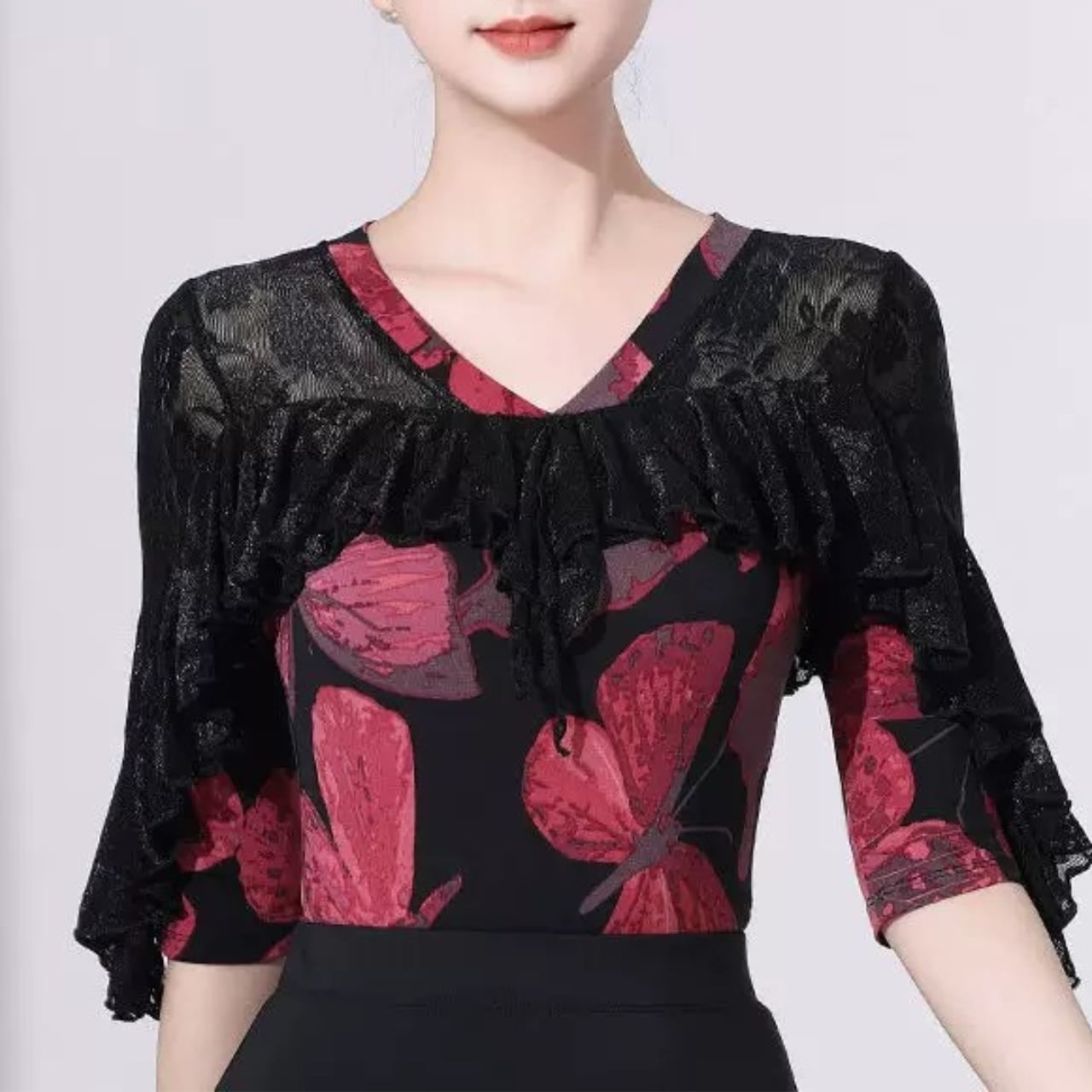 【商品管理番号】 L00140 【商品説明】 透け感のあるレースケープが重なったプリントトップス。腕まわりをふわっと包むデザインで、動きのあるシルエットに。首元のラインもアクセントになって、1枚で雰囲気をプラス。スカートにもパンツにも合わせやすく、着こなしを引き立てます。 REDBUTTERFLY/REDROSE/BLUELEAF/BLACKWHITE 【サイズ】 【M】バスト:76cm/肩幅:64cm 【L】バスト:80cm/肩幅:68cm 【XL】バスト:84cm/肩幅:72cm 【2XL】バスト:88cm/肩幅:76cm 【3XL】バスト:92cm/肩幅:80cm 【4XL】バスト:96cm/肩幅:84cm ※サイズは測り方により1-3㎝の誤差が生じる場合がございます。 【素材】 95%ナイロン/5%ポリウレタン ▼ご購入前にこちらを必ずお読みください https://admin.thebase.com/shop_admin/design/themes?r=about