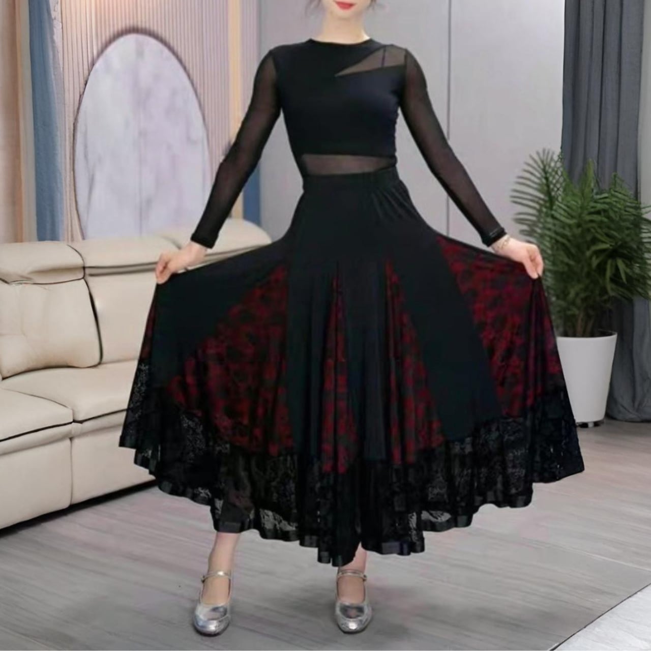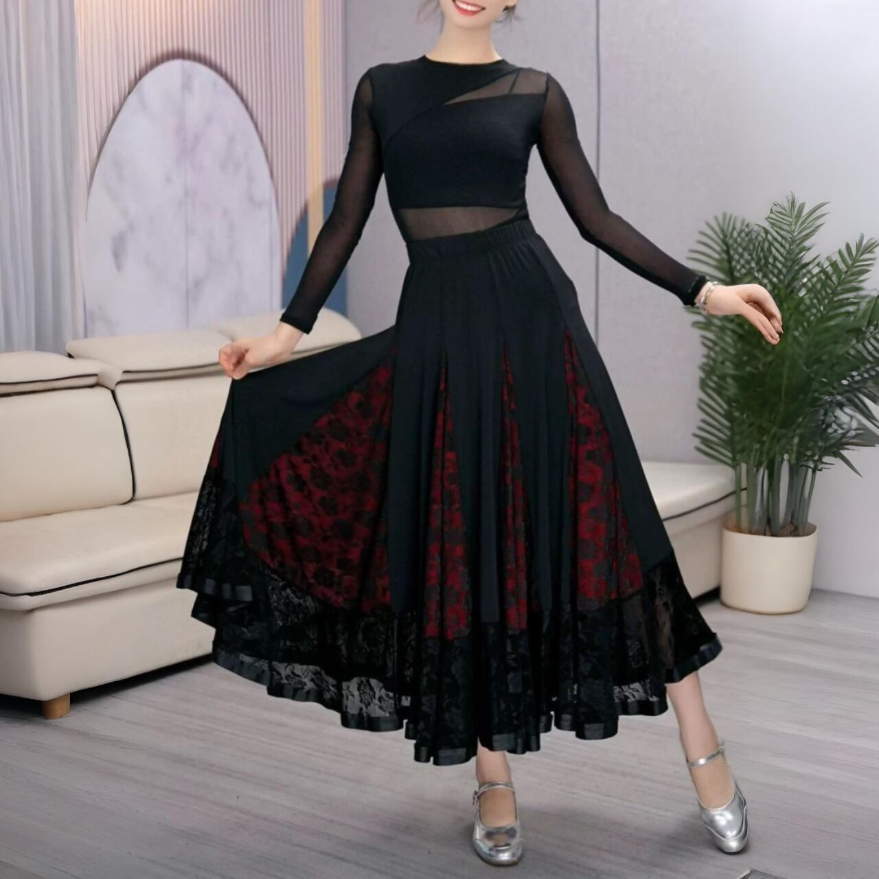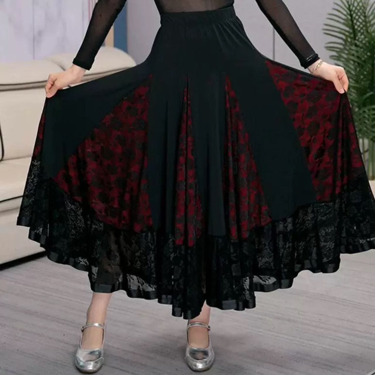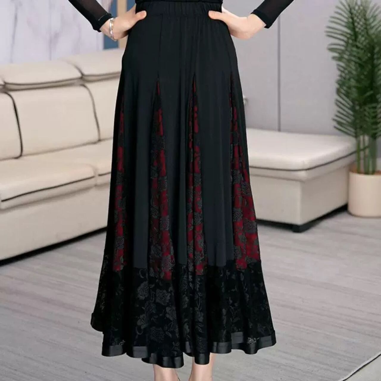【商品管理番号】 L00141 【商品説明】 シックな配色に切替デザインが映えるフレアロングスカート。裾にレースを重ねたディテールが大人っぽさをプラス。広がりのあるシルエットで動きが出て、後ろ姿まできれいにまとまります。きれいめにもモードにも馴染む一枚です。 BLACK 【サイズ】 【M】ウエスト:66cm / 着丈:82cm 【L】ウエスト:70cm / 着丈:83cm 【XL】ウエスト:74cm / 着丈:84cm 【2XL】ウエスト:78cm / 着丈:85cm 【3XL】ウエスト:82cm / 着丈:86cm ※サイズは測り方により1-3㎝の誤差が生じる場合がございます。 【素材】 95%ナイロン/5%ポリウレタン ▼ご購入前にこちらを必ずお読みください https://admin.thebase.com/shop_admin/design/themes?r=about