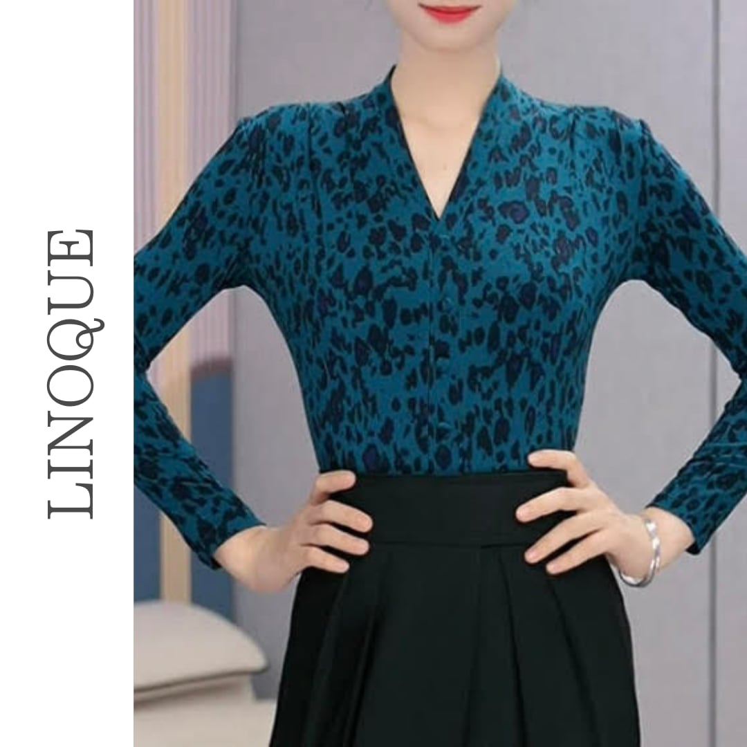 Vネックデザインとスリムフィットが魅力の長袖トップスです。レオパード柄が洗練された印象を与え、スタイリッシュなコーディネートに活躍する一着です。身体のラインを美しく引き立てるシルエットで、着る人の魅力を最大限に引き出してくれるアイテムです。